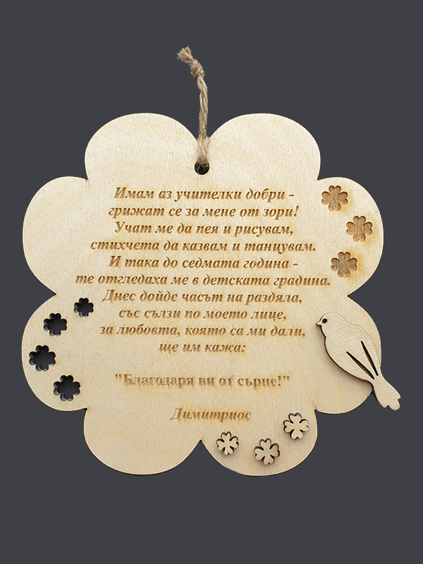 ДЪРВЕНА КАРТИЧКА/МАГНИТ ДЕТЕЛИНА ЗА УЧИТЕЛ