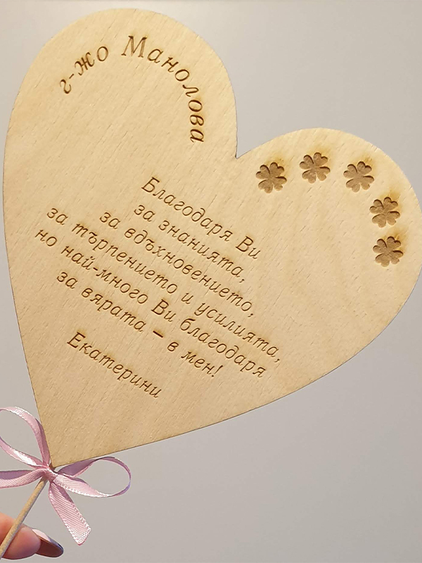 ДЪРВЕНА КАРТИЧКА/МАГНИТ СЪРЦЕ ЗА УЧИТЕЛ