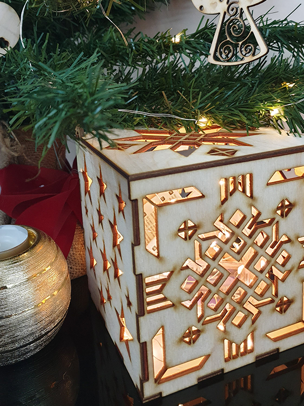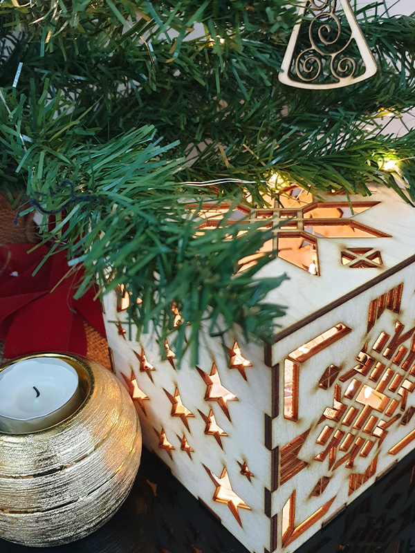 Кутията може да бъде използвана както за лампички за украса, така също като свещник с изкуствена ел. свещ, кутия за сладки, кутия за бижута или просто да опаковате подарък.