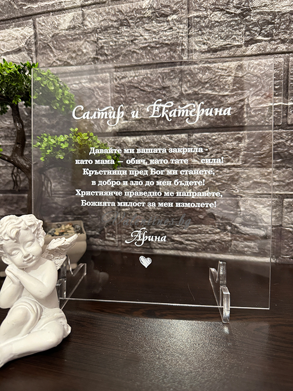 Материал покана: Акрилно стъкло прозрачно/плексиглас 2мм