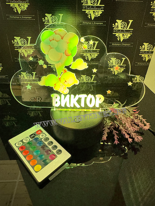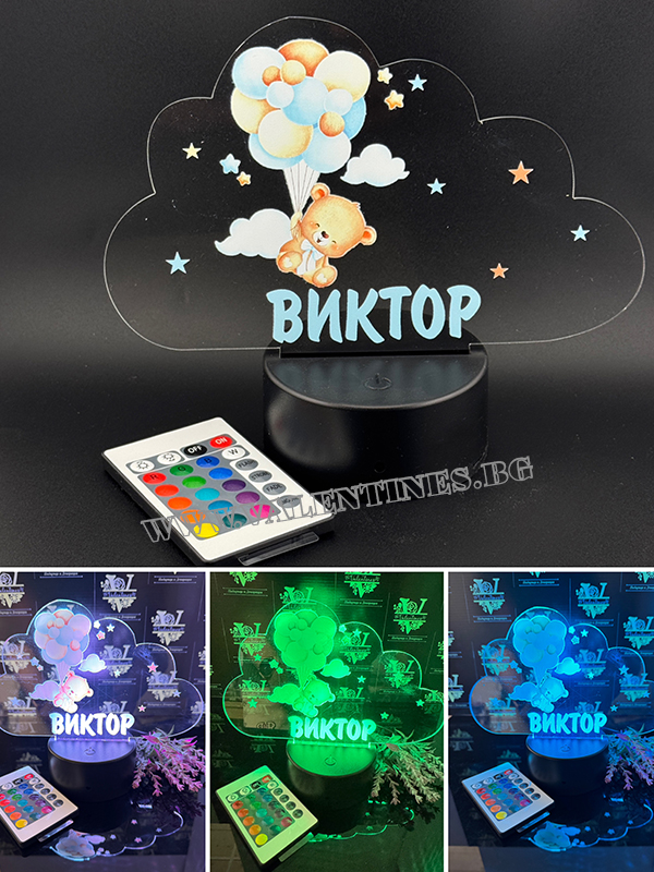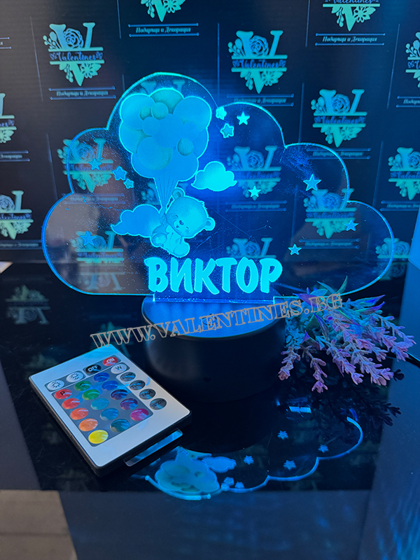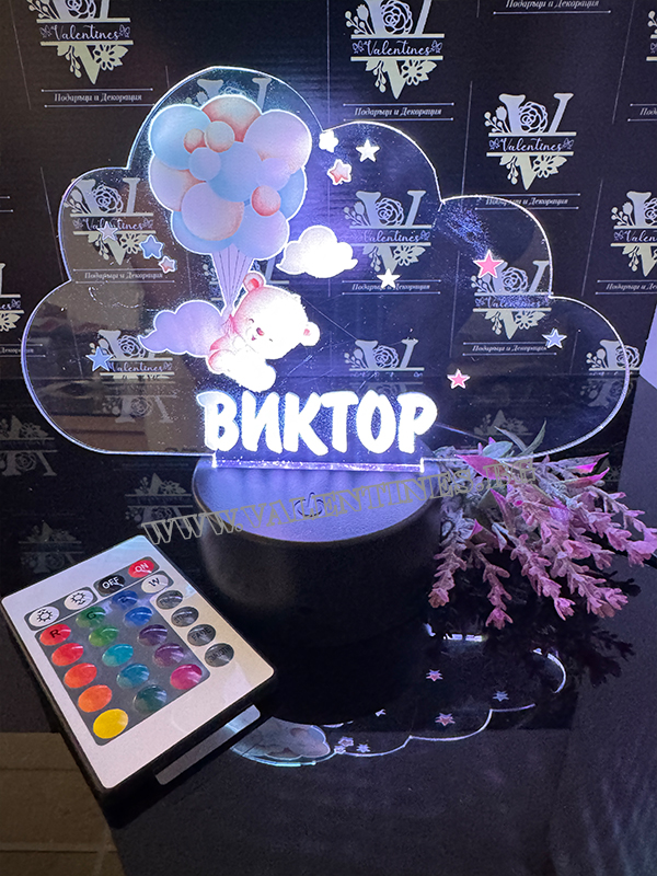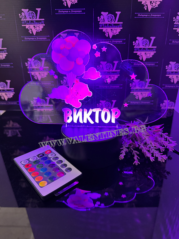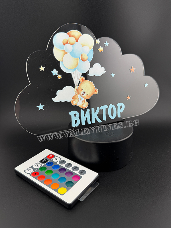 LED ЛАМПА ОБЛАК - МЕЧЕ С БАЛОНИ С ПЕРСОНАЛИЗИРАНА ИМЕ НА ДЕТЕТО