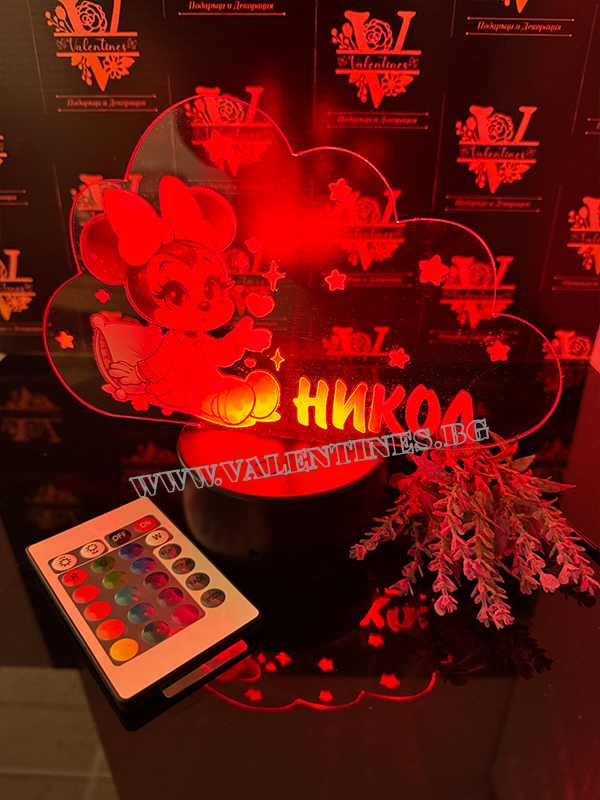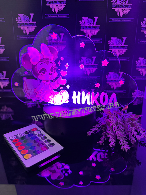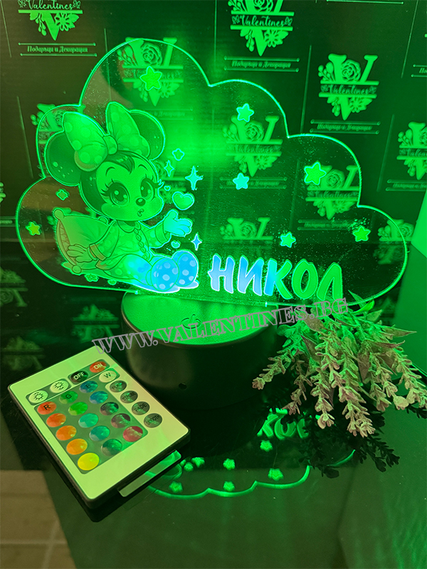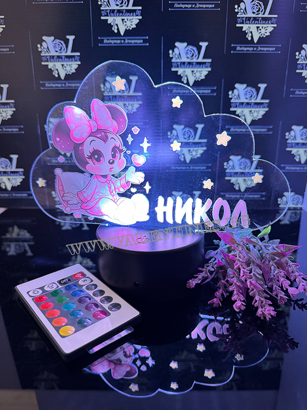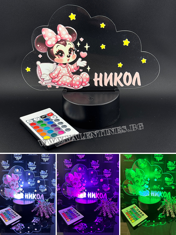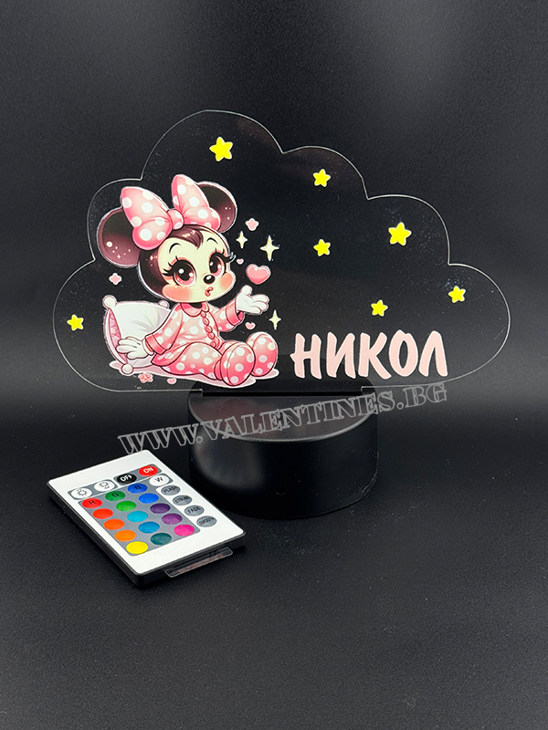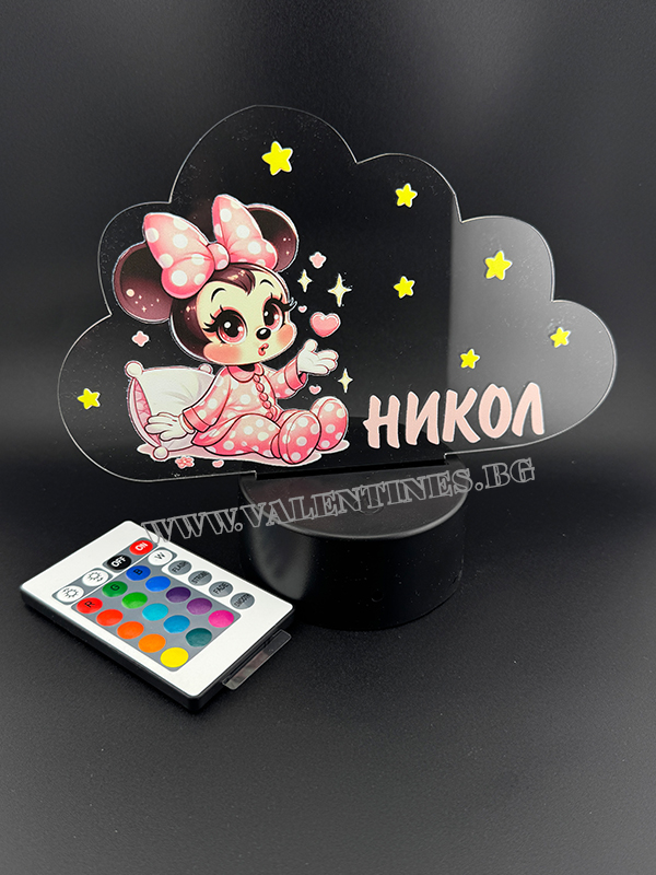 LED ЛАМПА ОБЛАК - МИНИ МАУС С ПЕРСОНАЛИЗИРАНА ИМЕ НА ДЕТЕТО