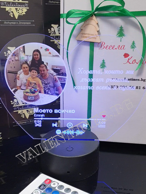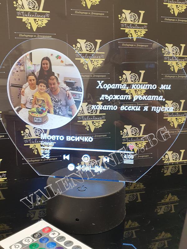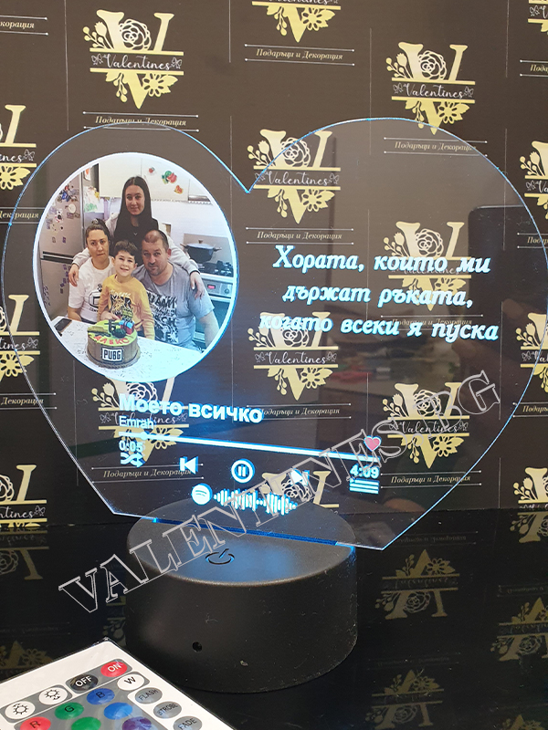 Музикална корица "Spotify" СЪРЦЕ с LED поставка - СЕМЕЙСТВО