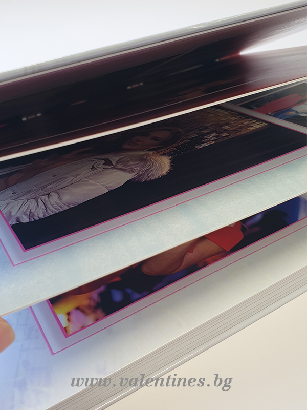 Фотокнига Премиум Плюс е с луксозна твърда корица, изработена от 2мм мукава, облечена с отпечатана обложка.