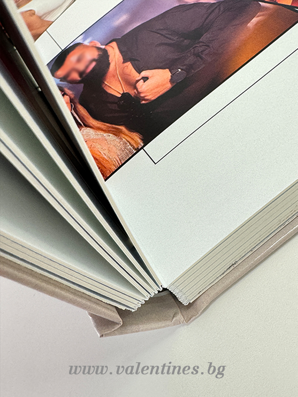 Фотокнига Премиум Плюс е с твърди вътрешни страници слепени по метода за подвързване Lay Flat - отделните разгъвки се слепват гръб с гръб.