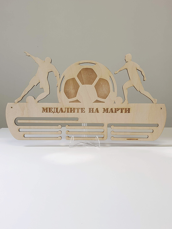 Поставка за медали Комбинирана - плуване, футболМатериал: шперплат - 8 мм лазерно изрязан и гравиранПриблизителен размер: 50см/30смИзработка от 3..