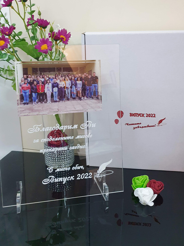 Текста може да бъде по ваш избор или същия като на мострата. Фирмата НЕ носи отговорност при грешно изписан текст.