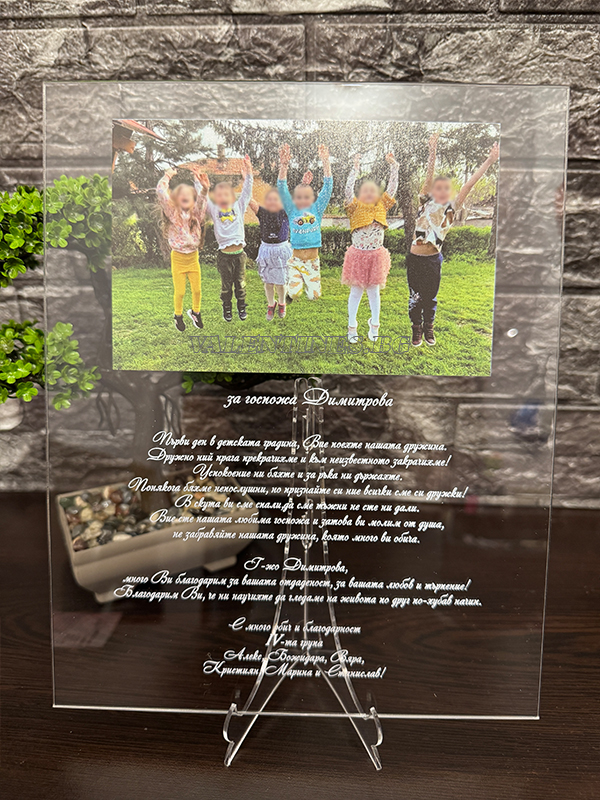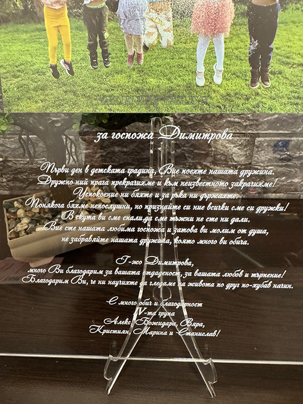 Текста може да бъде по ваш избор или същия като на мострата. Фирмата НЕ носи отговорност при грешно изписан текст.