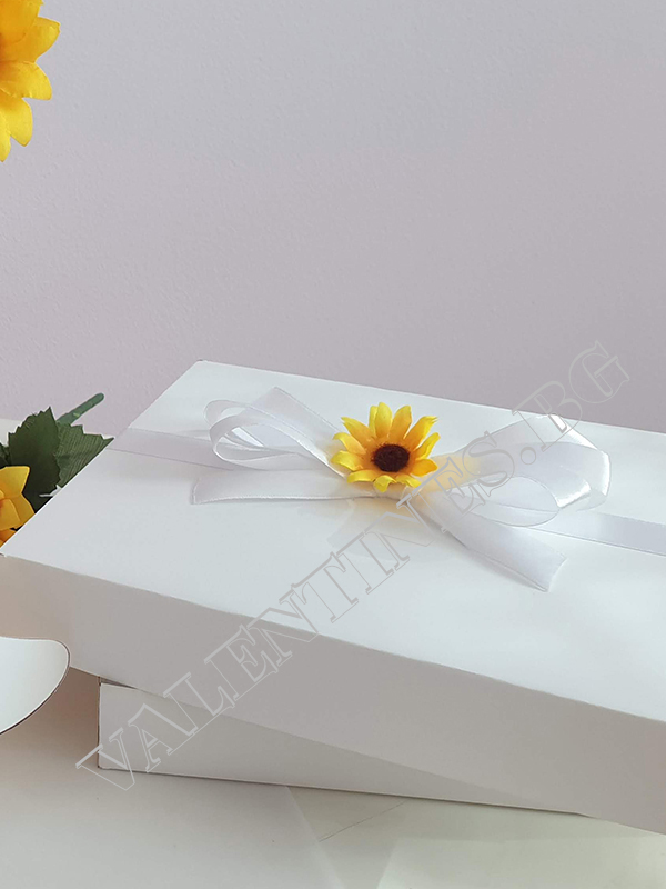 Луксозна картонена кутия правоъгълна с цвете по ваш избор /ДОПЛАЩА СЕ СПОРЕД ВИДА НА ЦВЕТЕТО/