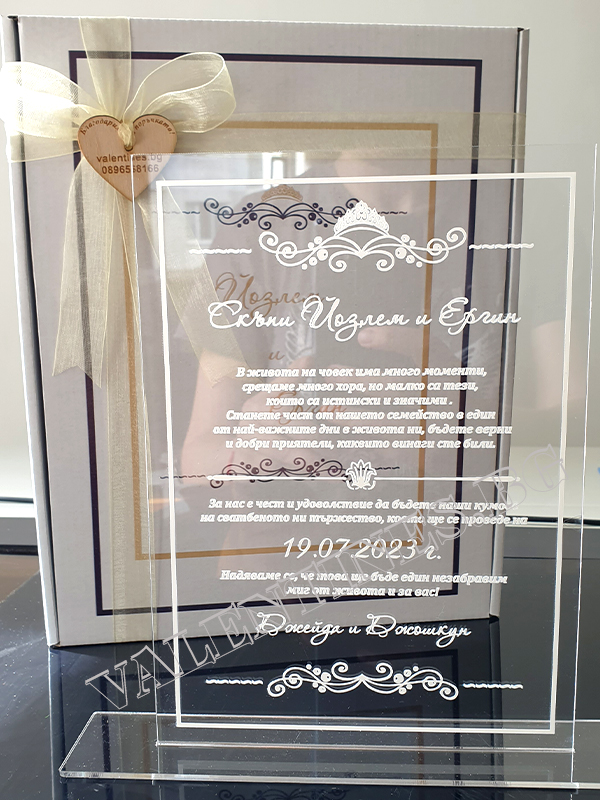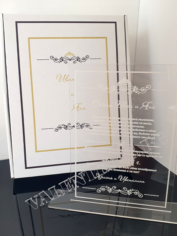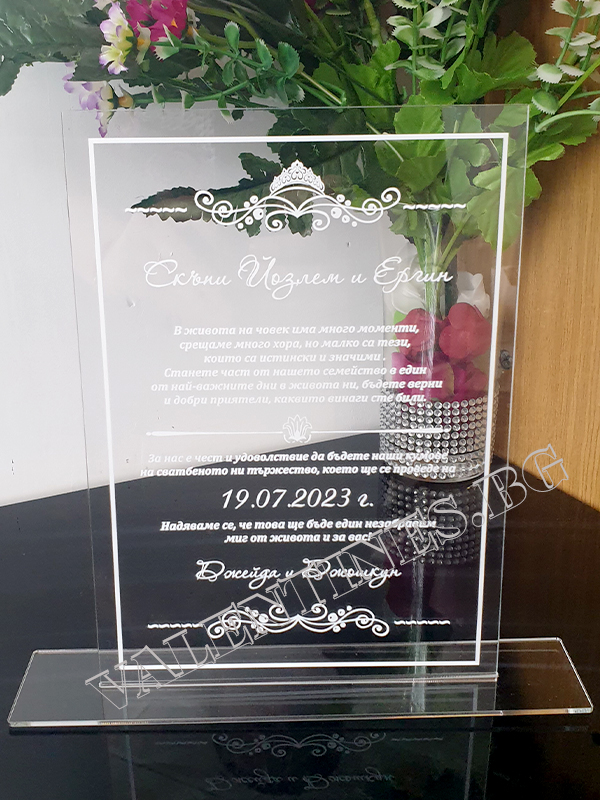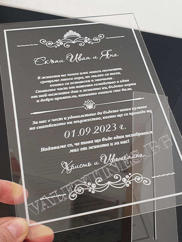 Материал покана: Акрилно стъкло прозрачно/плексиглас 2мм