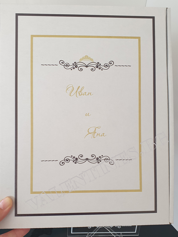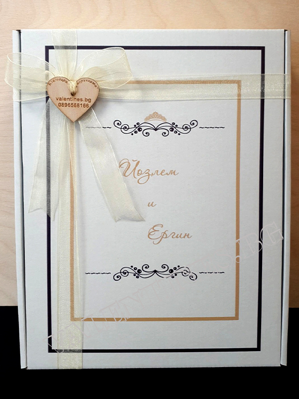 При поръчка с кутия в опция бележки изпишете имената които ще бъдат отпечатани върху кутията.