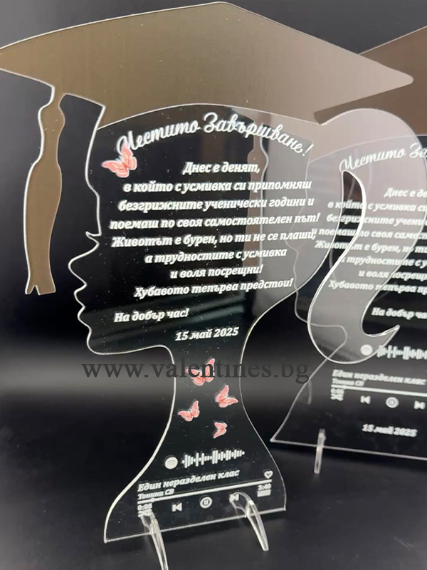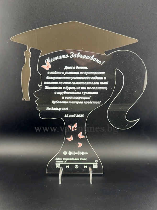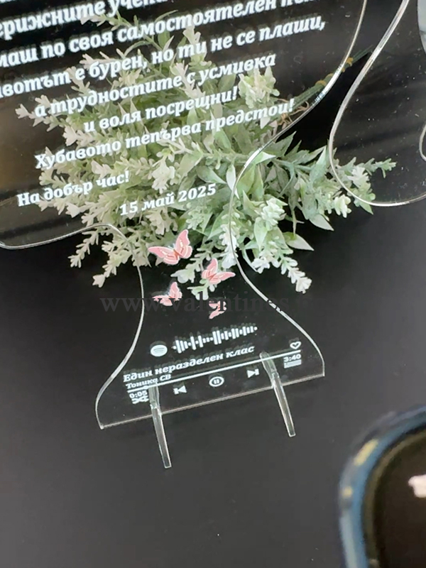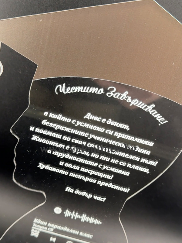 ПРОМО Плакет за завършване от акрилно стъкло със Spotify код към песен
