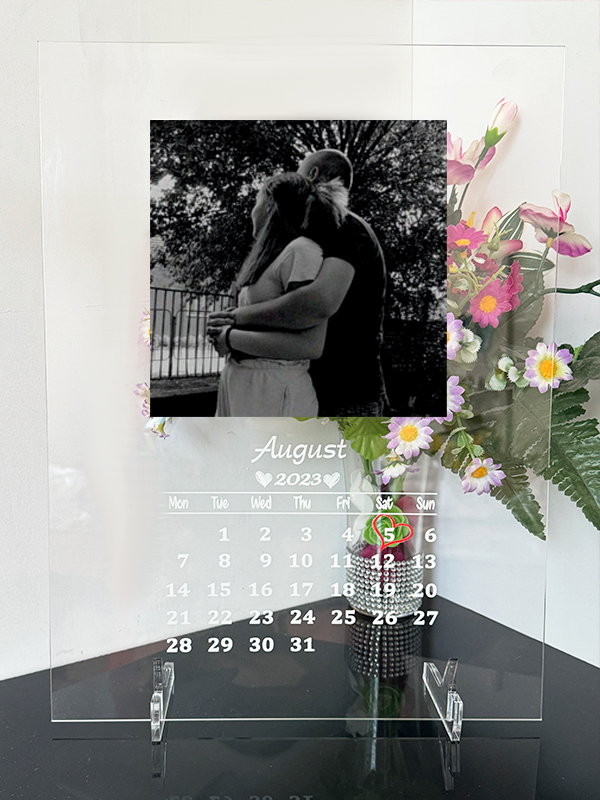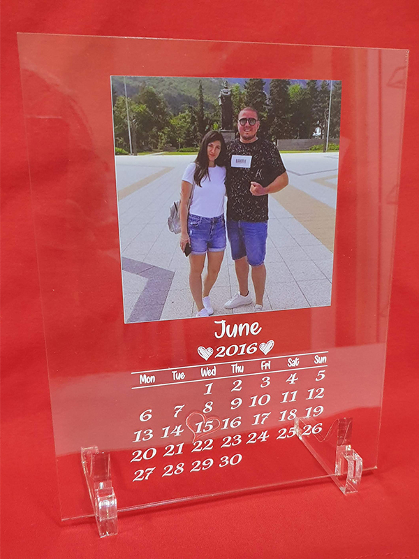 Плакет "Календар" от прозрачно стъкло с дата, месец, година и поставка