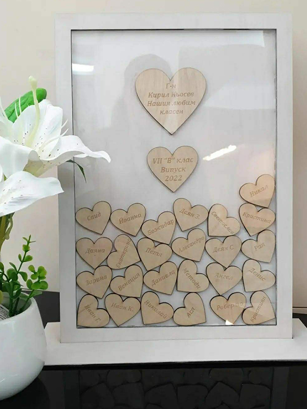 Рамка "Сърца" един страхотен подарък за вашия учител, с който може да покажете колко много го обичате, и колко ще ви липсва.