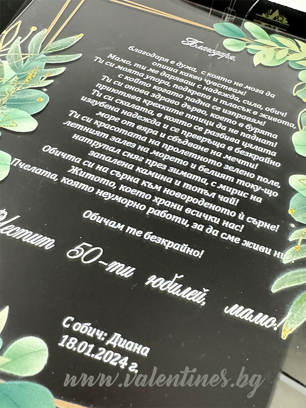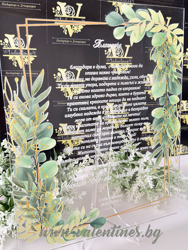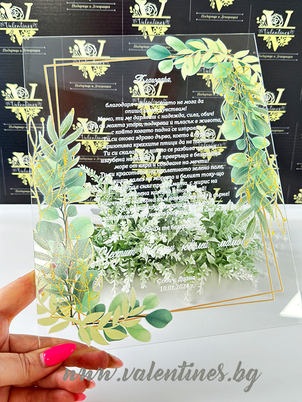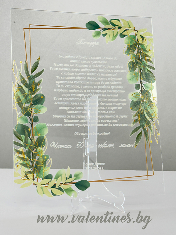 Стъклен Плакет Евкалипт С ПОЖЕЛАНИЕ - Честит рожден ден!