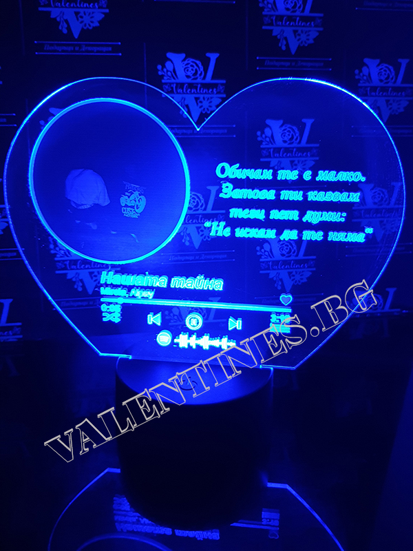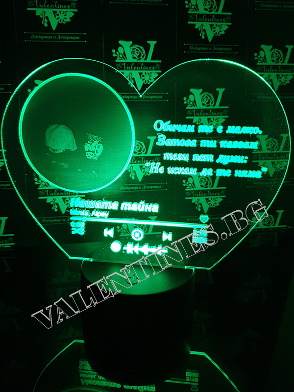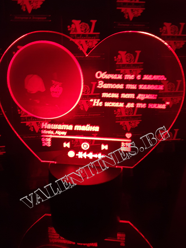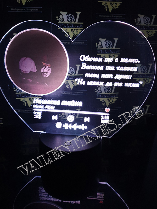 Музикална корица "Spotify" СЪРЦЕ с LED поставка - НЕ ИСКАМ ДА ТЕ НЯМА
