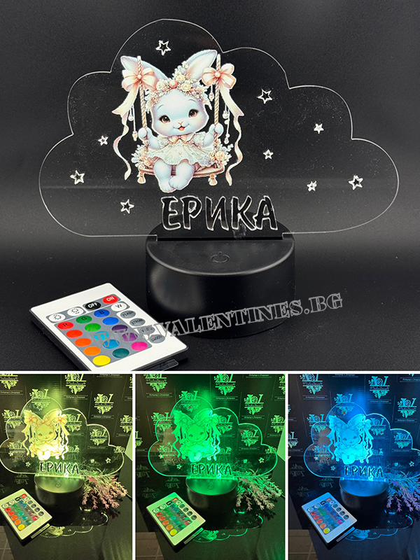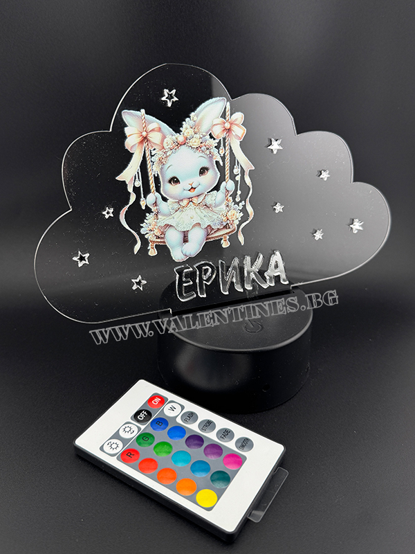 LED ЛАМПА ОБЛАК ЗАЙЧЕ С ПЕРСОНАЛИЗИРАНА ИМЕ НА ДЕТЕТО